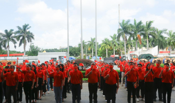 盛夏七月,热情似火!九游老哥公司已是党旗飘扬,处处洋溢着喜庆祥和的气氛。当日上午,身穿“中国红”T恤的党员等参会人员有序入场,列队数字“100”庆祝图案,表达对中国共产党的无限热爱。随着主持人一声令下,伴随着激昂雄壮的国歌声,护旗手奋力将鲜艳的五星红旗抛向天空,国旗迎着清晨第一缕阳光冉冉升起,全体人员庄重注视国旗,高唱国歌,脸上写满了骄傲与自豪。